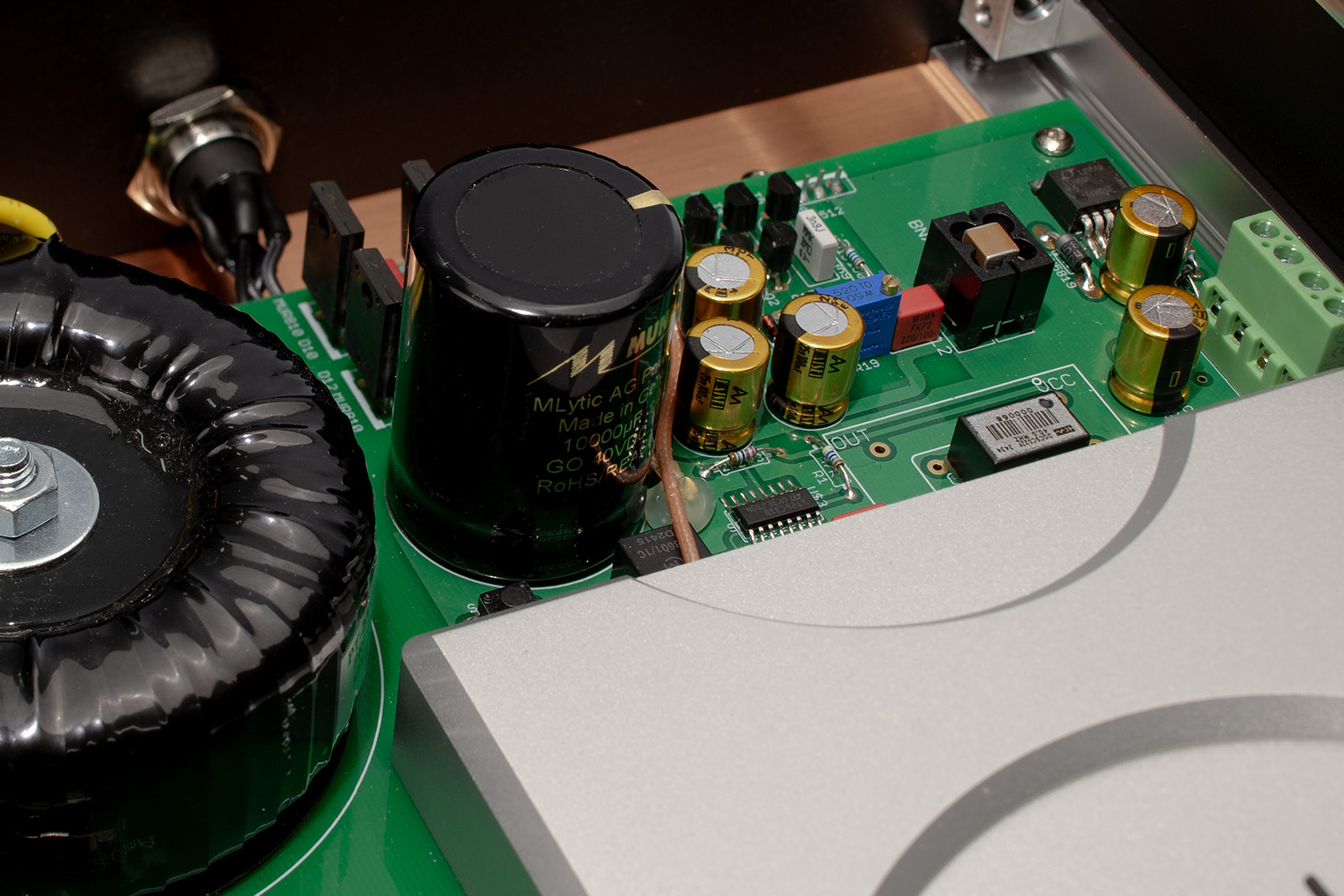 • First stage: Discrete linear power supply architecture for fast, low-noise DC output